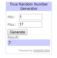 Como sabem as regras consistiam em responder correctamente a 5 perguntas e depois faria random ao número do comentário para atribuir os 7 prémios.